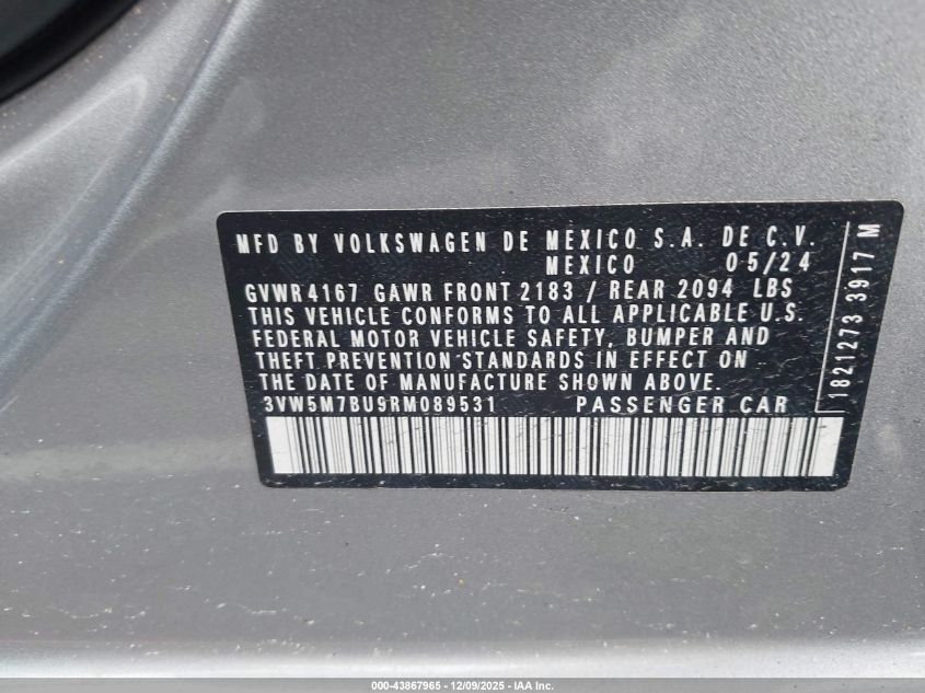 2024 VOLKSWAGEN JETTA 2024 року Бензин, 1.5, Передній привід, vin - 3VW5M7BU9RM089531 з США