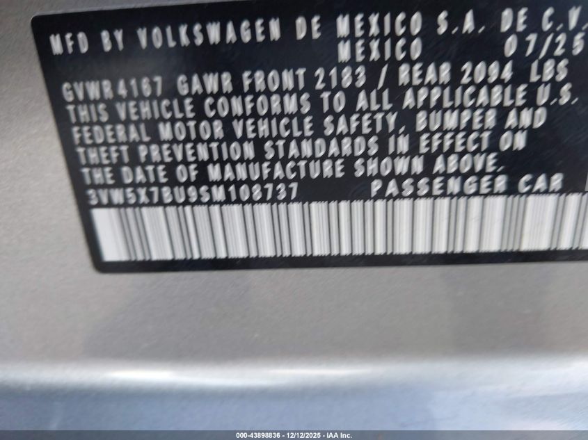 2025 VOLKSWAGEN JETTA 2025 року Бензин, 1.5, Передній привід, vin - 3VW5X7BU9SM108737 з США