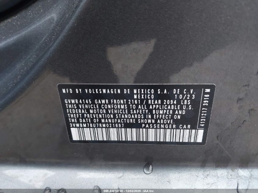 2024 VOLKSWAGEN JETTA 2024 року Бензин, 1.5, Передній привід, vin - 3VWBM7BU7RM021697 з США