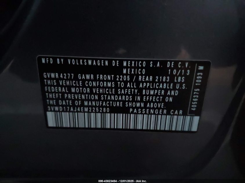2014 VOLKSWAGEN JETTA 2014 року Бензин, 1.8, Передній привід, vin - 3VWD17AJ4EM225280 з США