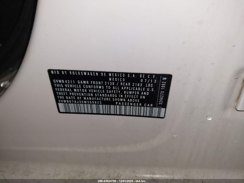 2014 VOLKSWAGEN JETTA 2014 року Бензин, 1.8, Передній привід, vin - 3VWB07AJ3EM359823 з США