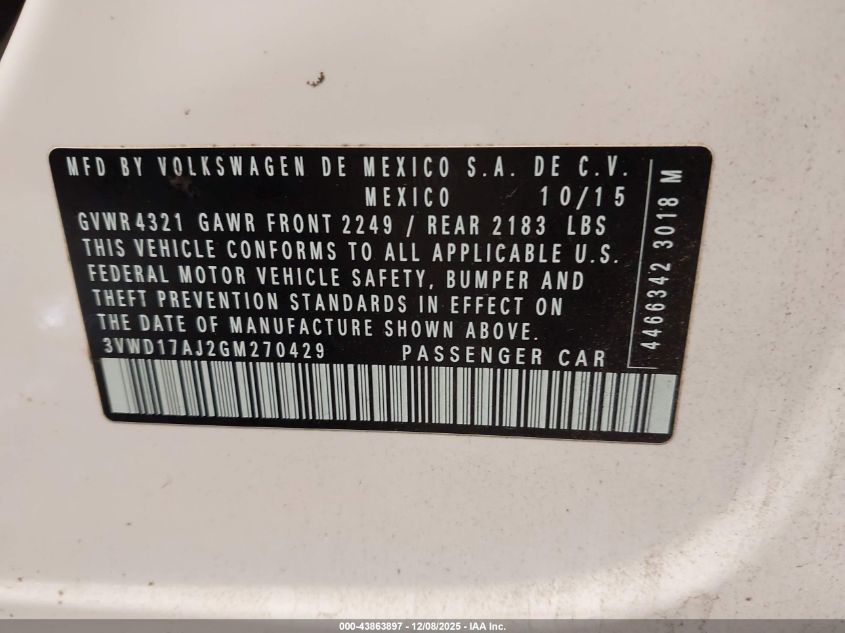 2016 VOLKSWAGEN JETTA 2016 року Бензин, 1.8, Передній привід, vin - 3VWD17AJ2GM270429 з США