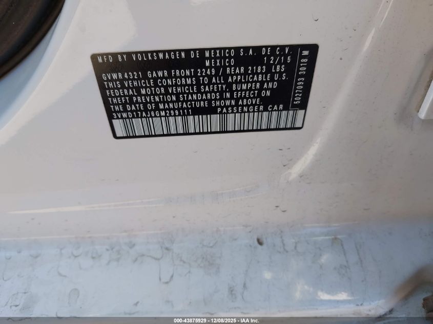 2016 VOLKSWAGEN JETTA 2016 року Бензин, 1.8, Передній привід, vin - 3VWD17AJ6GM299111 з США