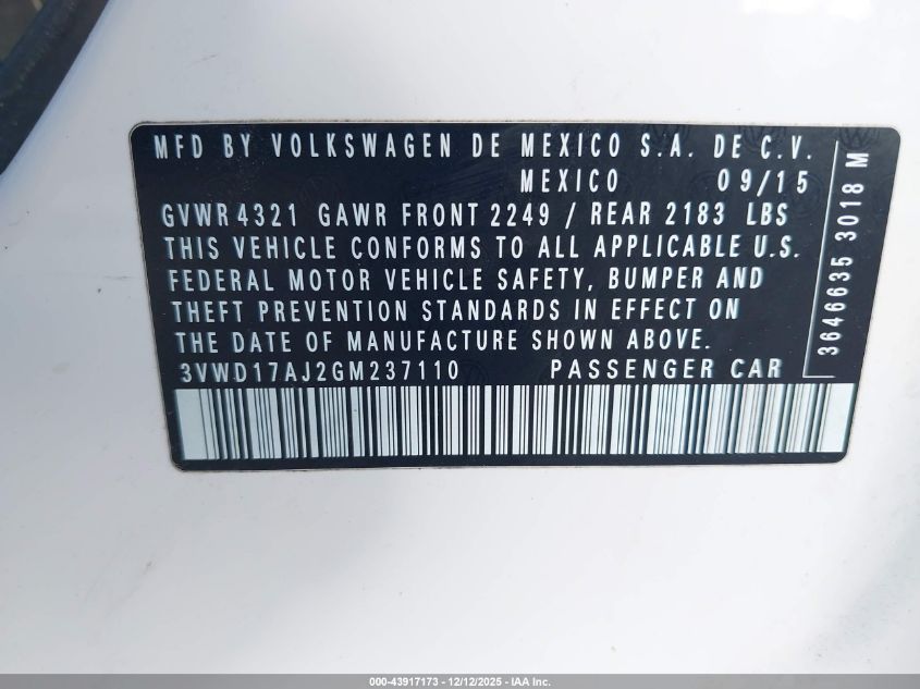 2016 VOLKSWAGEN JETTA 2016 року Бензин, 1.8, Передній привід, vin - 3VWD17AJ2GM237110 з США