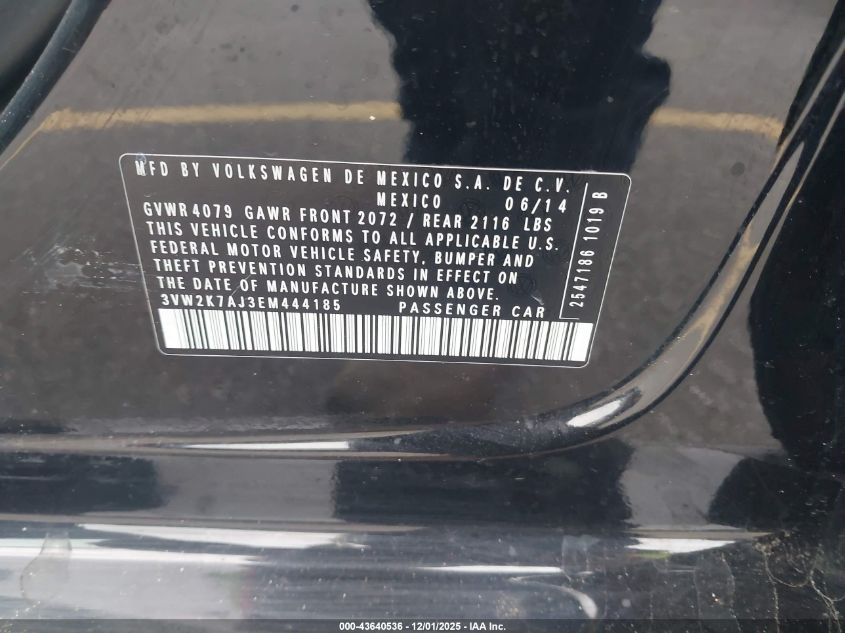 2014 VOLKSWAGEN JETTA 2014 року Бензин, 2.0, Передній привід, vin - 3VW2K7AJ3EM444185 з США