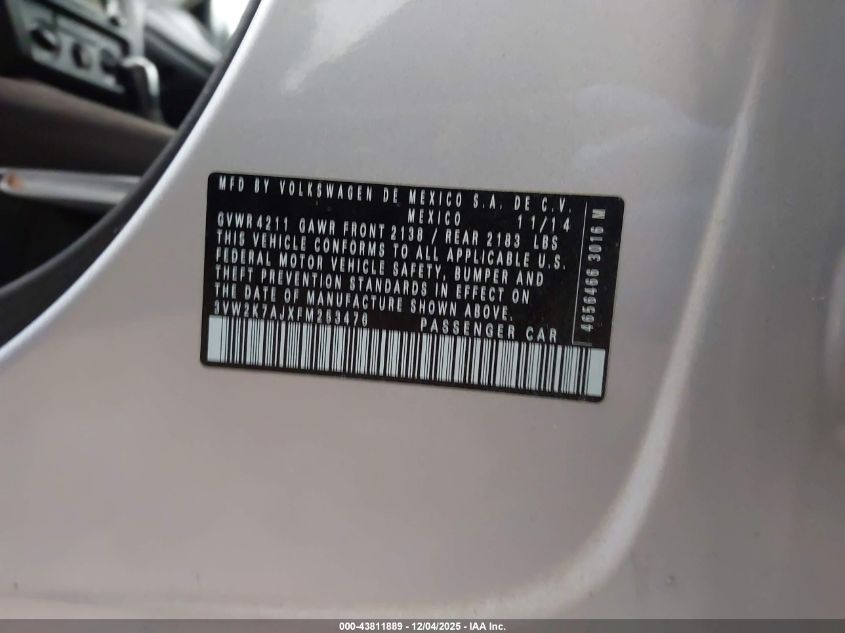 2015 VOLKSWAGEN JETTA 2015 року Бензин, 2.0, Передній привід, vin - 3VW2K7AJXFM253476 з США