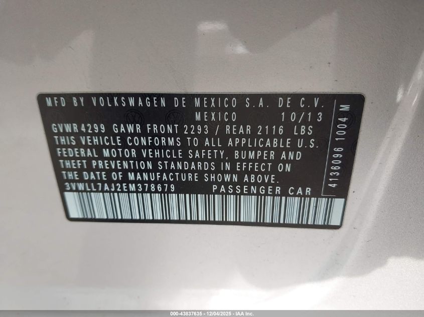 2014 VOLKSWAGEN JETTA 2014 року Дизель, 2.0, Передній привід, vin - 3VWLL7AJ2EM378679 з США