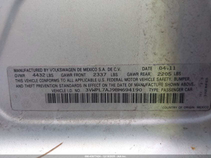 2011 VOLKSWAGEN JETTA S