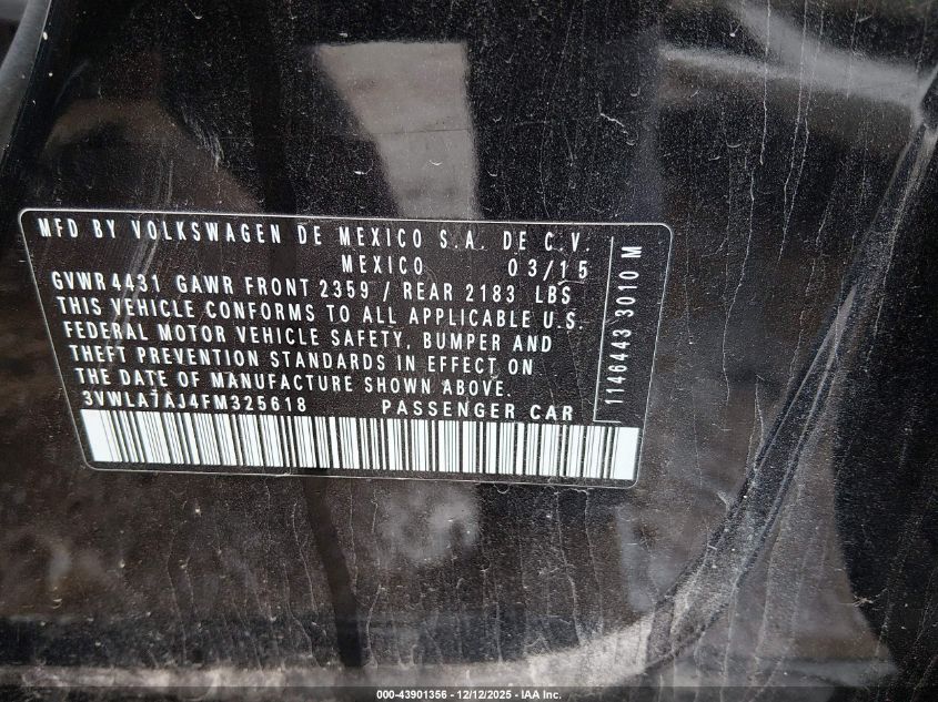 2015 VOLKSWAGEN JETTA 2015 року Дизель, 2.0, Передній привід, vin - 3VWLA7AJ4FM325618 з США