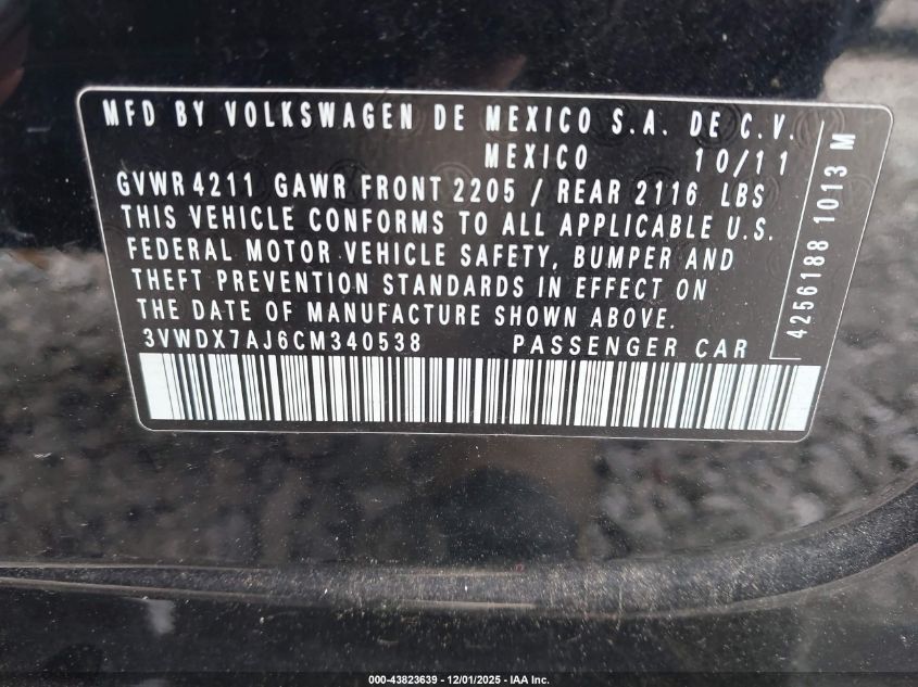 2012 VOLKSWAGEN JETTA 2012 року Бензин, 2.5, Передній привід, vin - 3VWDX7AJ6CM340538 з США