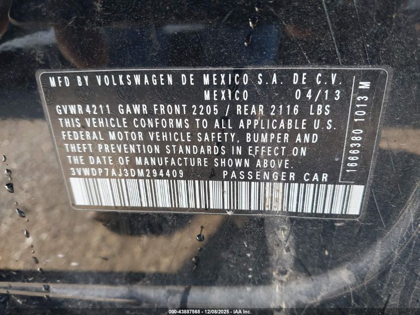 2013 VOLKSWAGEN JETTA 2013 року Бензин, 2.5, Передній привід, vin - 3VWDP7AJ3DM294409 з США