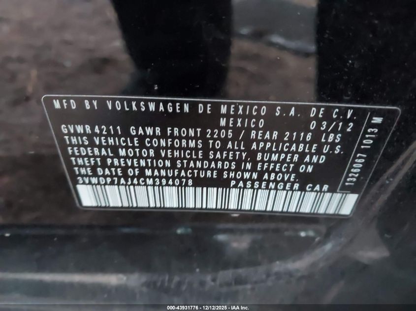 2012 VOLKSWAGEN JETTA SE