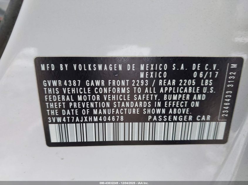 2017 VOLKSWAGEN JETTA S