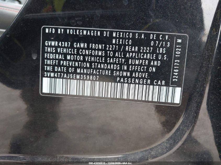 2014 VOLKSWAGEN JETTA 2014 року Бензин, 2.0, Передній привід, vin - 3VW4T7AJ5EM359807 з США