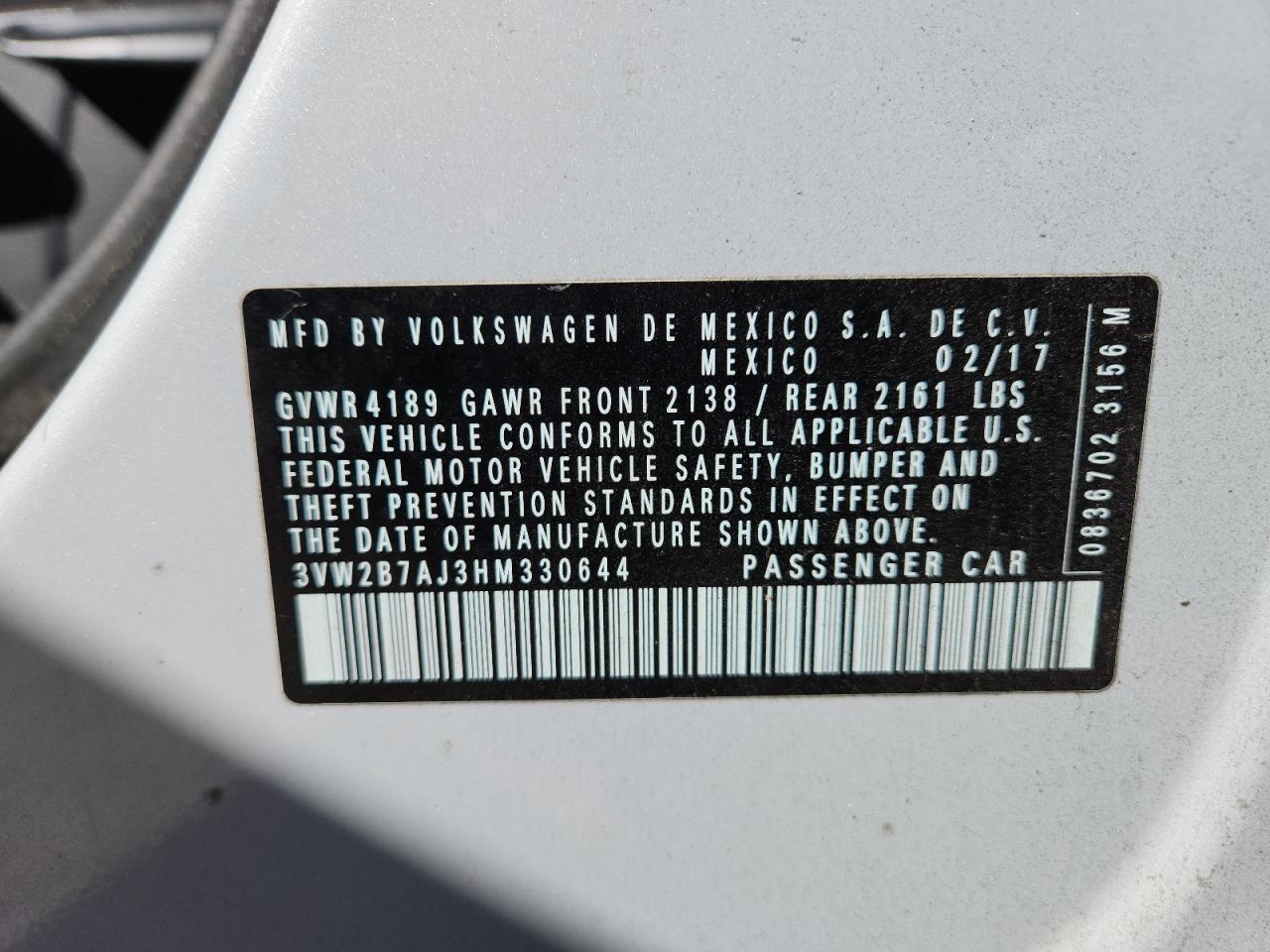 2017 VOLKSWAGEN JETTA S