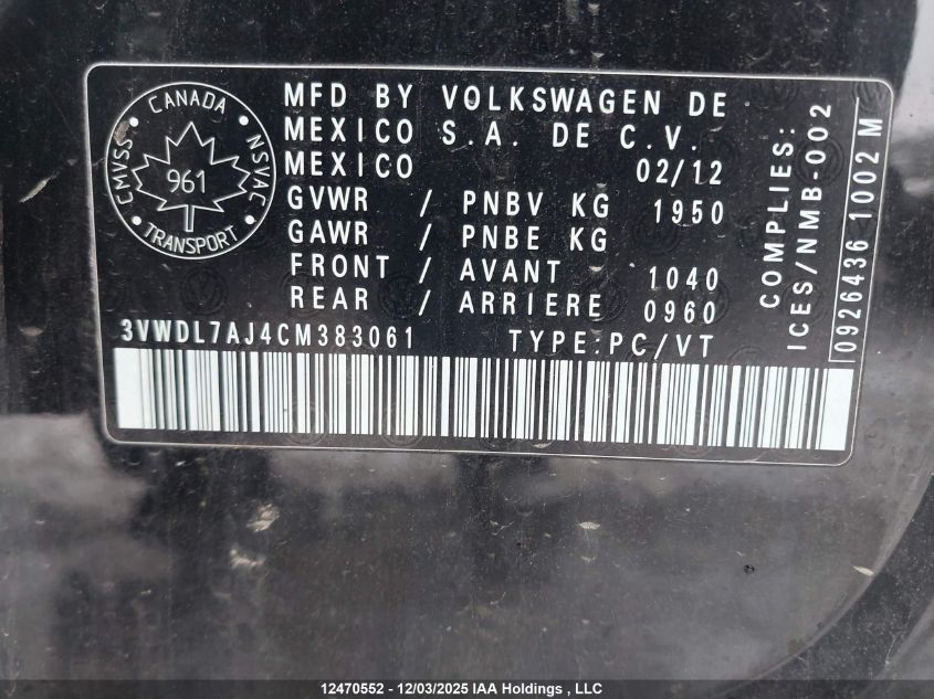 2012 VOLKSWAGEN JETTA 2012 року Дизель, , Передній привід, vin - 3VWDL7AJ4CM383061 з США