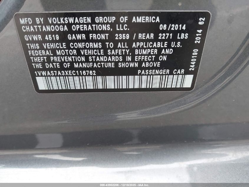 2014 VOLKSWAGEN PASSAT 2014 року Бензин, 1.8, Передній привід, vin - 1VWAS7A3XEC116762 з США