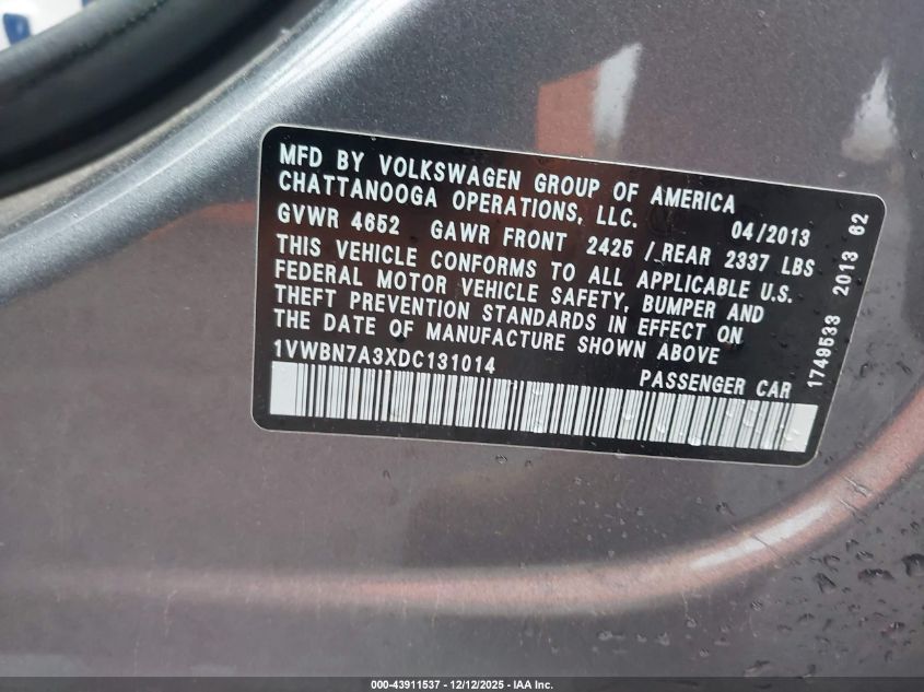 2013 VOLKSWAGEN PASSAT 2013 року Дизель, 2.0, Передній привід, vin - 1VWBN7A3XDC131014 з США