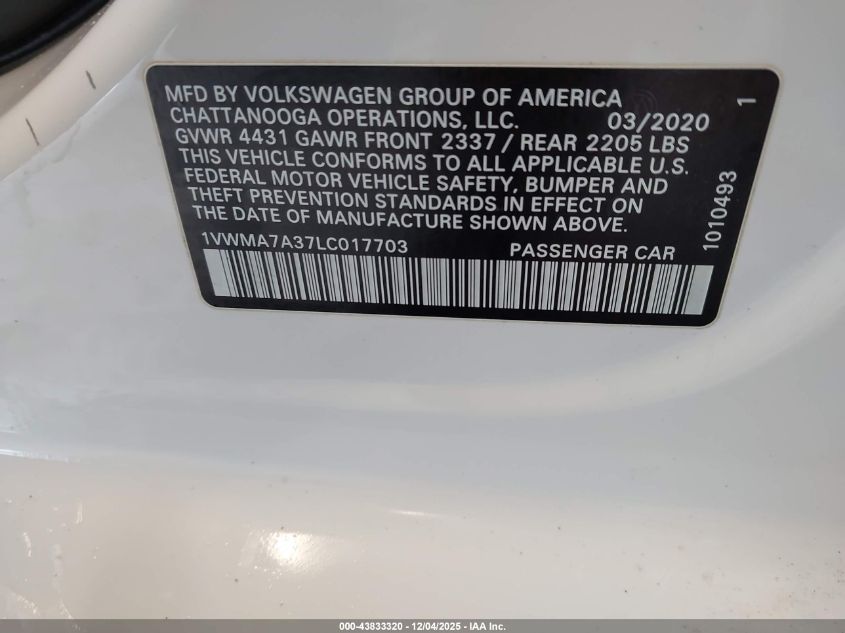 2020 VOLKSWAGEN PASSAT SE