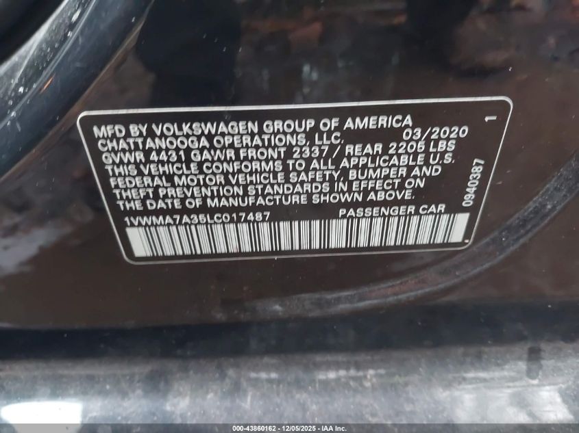 2020 VOLKSWAGEN PASSAT 2020 року Бензин, 2.0, Передній привід, vin - 1VWMA7A35LC017487 з США