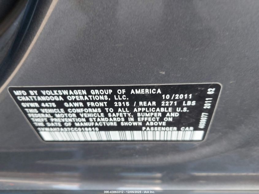 2012 VOLKSWAGEN PASSAT SE
