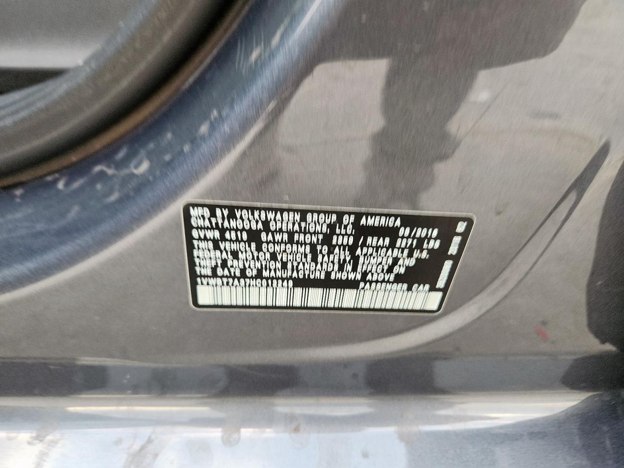 2017 VOLKSWAGEN PASSAT 2017 року Бензин, 1.8, , vin - 1VWBT7A37HC012249 з США