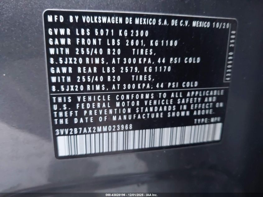 2021 VOLKSWAGEN TIGUAN 2021 року Бензин, 2.0, Повний привід, vin - 3VV2B7AX2MM023968 з США