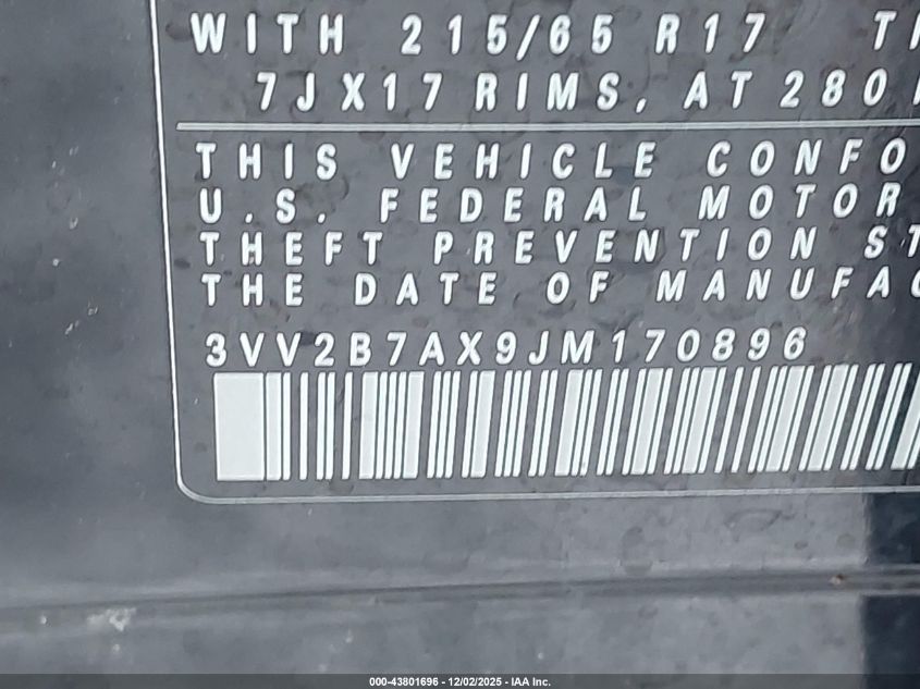 2018 VOLKSWAGEN TIGUAN 2018 року Бензин, 2.0, Повний привід, vin - 3VV2B7AX9JM170896 з США