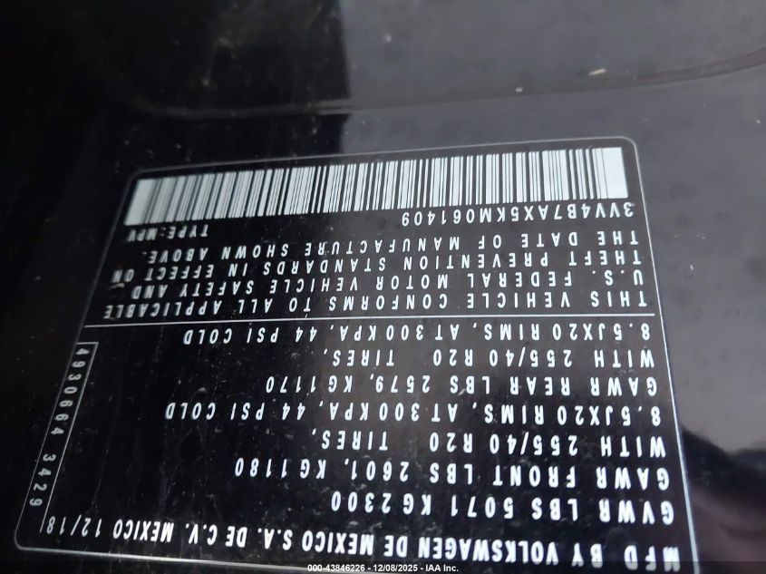 2019 VOLKSWAGEN TIGUAN 2019 року Бензин, 2.0, Повний привід, vin - 3VV4B7AX5KM061409 з США
