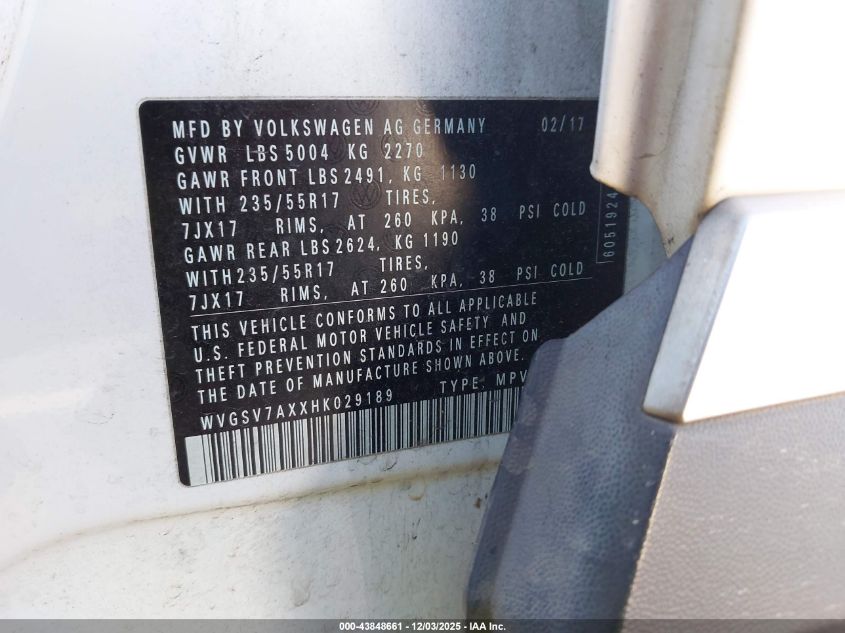 2017 VOLKSWAGEN TIGUAN 2017 року Бензин, 2.0, Повний привід, vin - WVGSV7AXXHK029189 з США