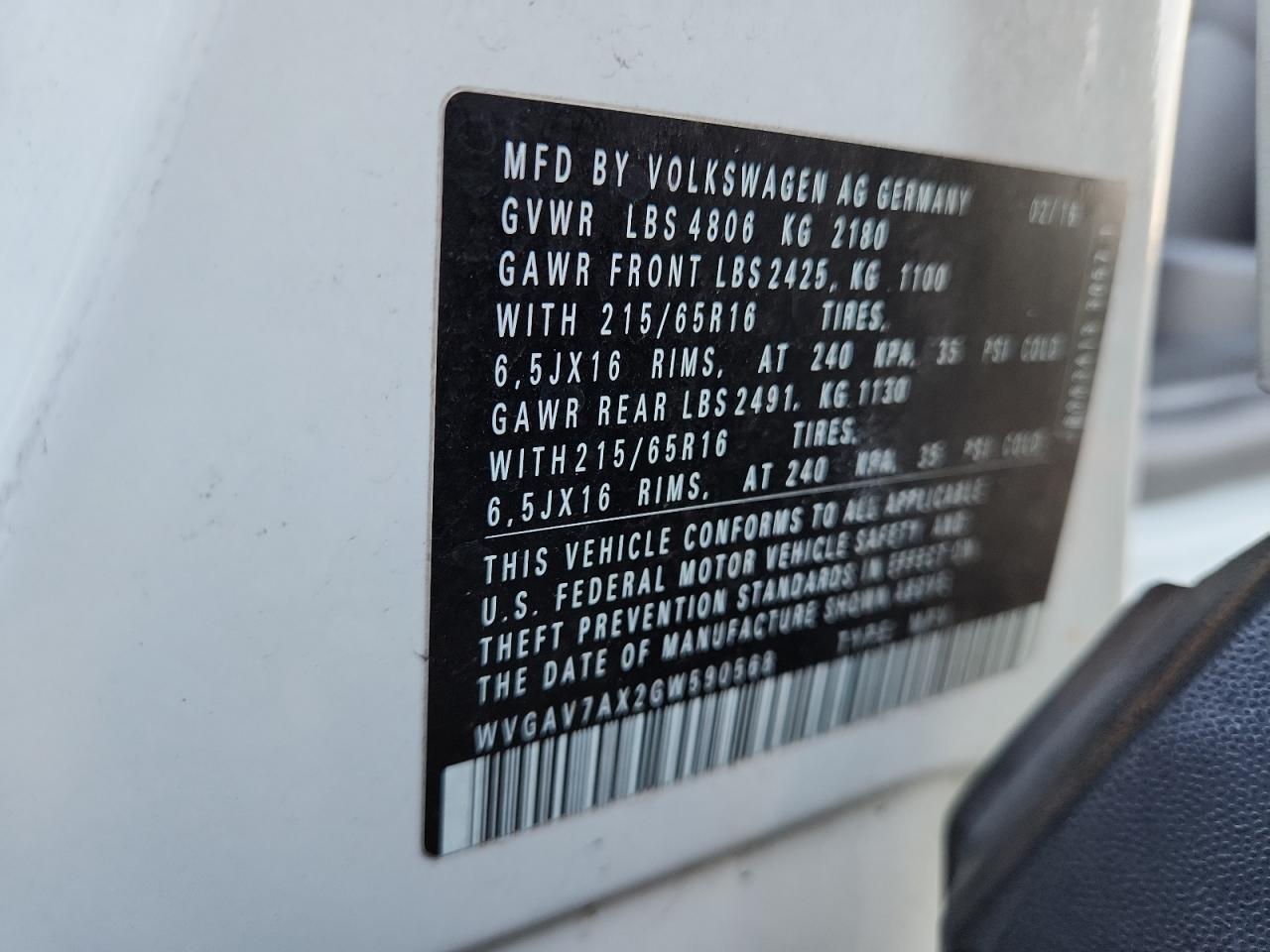 2016 VOLKSWAGEN TIGUAN 2016 року Бензин, 2.0, , vin - WVGAV7AX2GW590568 з США