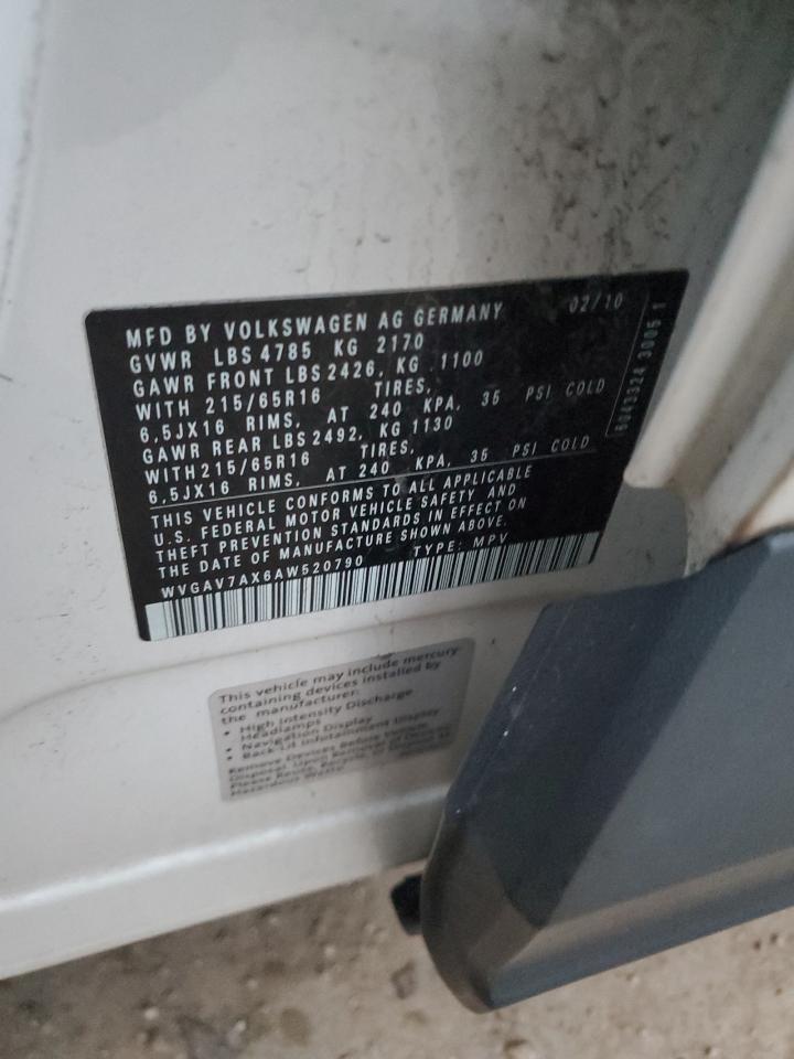 2010 VOLKSWAGEN TIGUAN 2010 року Бензин, 2.0, , vin - WVGAV7AX6AW520790 з США