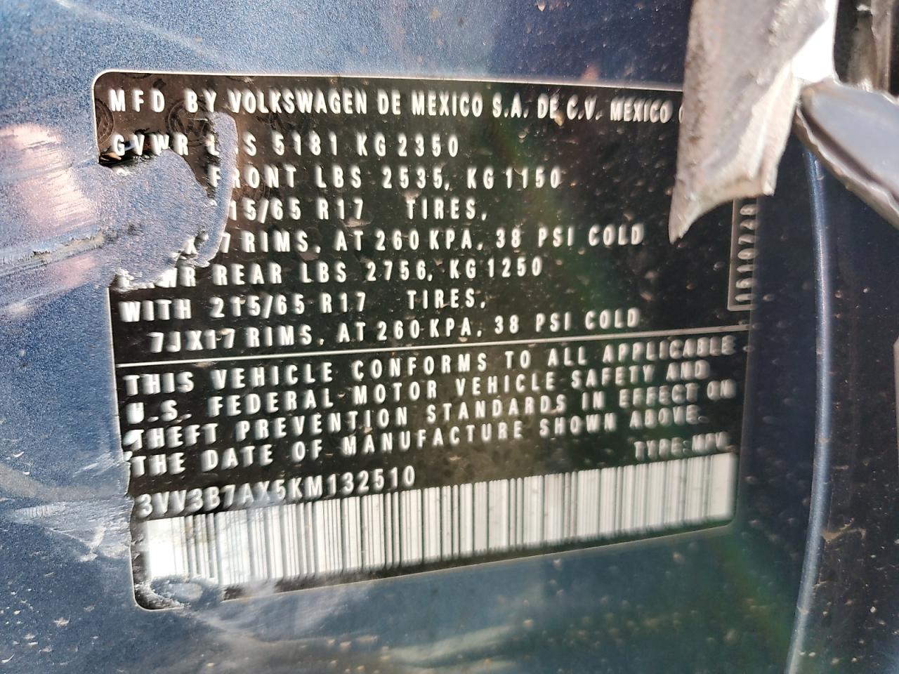 2019 VOLKSWAGEN TIGUAN 2019 року Бензин, 2.0, , vin - 3VV3B7AX5KM132510 з США