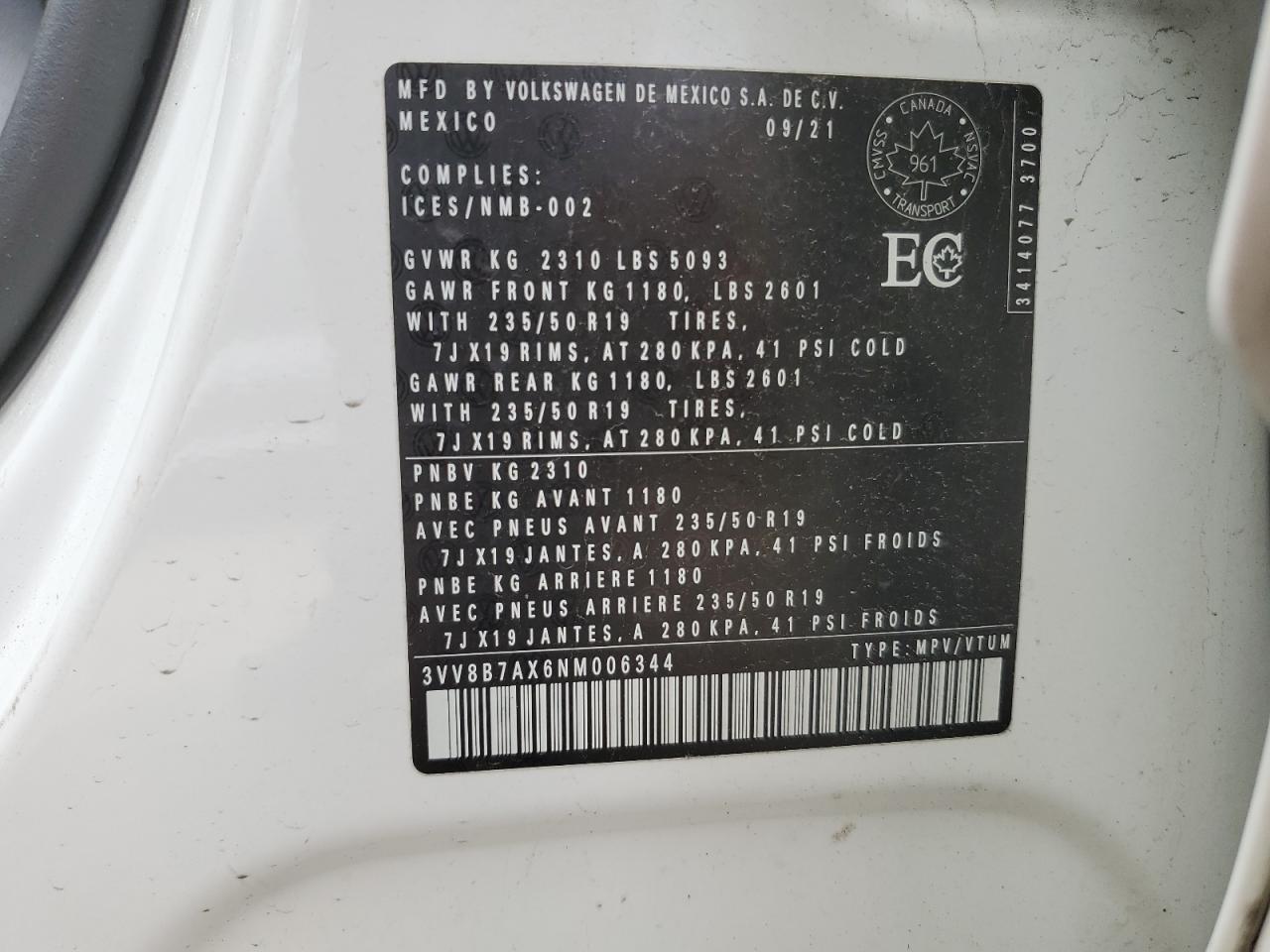 2022 VOLKSWAGEN TIGUAN 2022 року Бензин, 2.0, Повний привід, vin - 3VV8B7AX6NM006344 з США