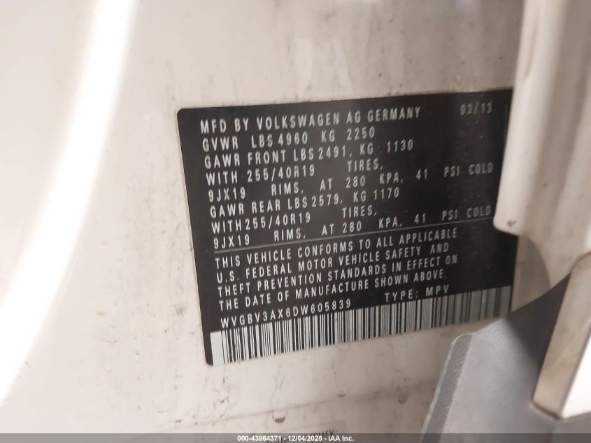 2013 VOLKSWAGEN TIGUAN 2013 року Бензин, 2.0, Повний привід, vin - WVGBV3AX6DW605839 з США