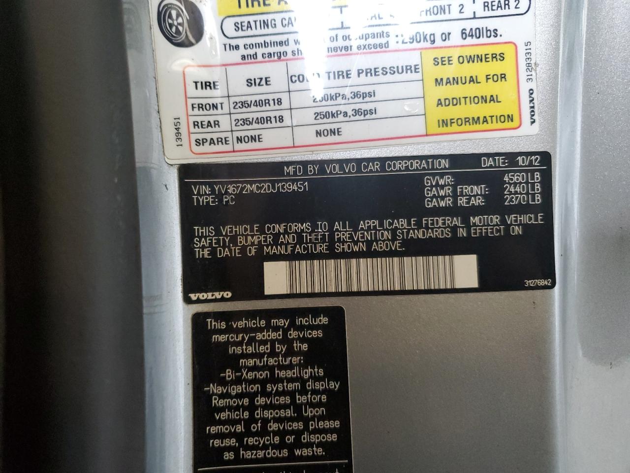 2013 VOLVO C70 T5