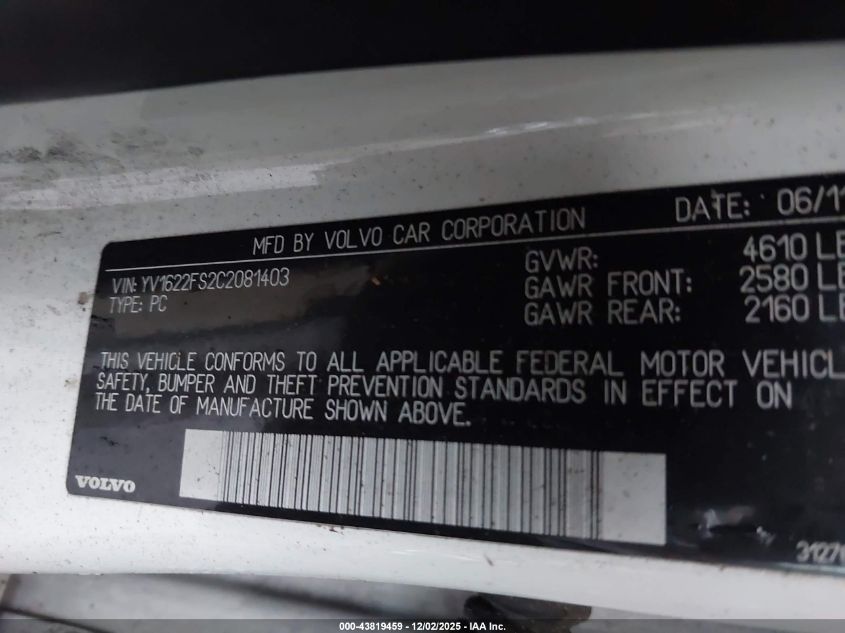 Колір БілийЦиліндри 5Привід Передній привідVIN YV1622FS2C2081403Стан СтаціонарноУшкодження НевідомоДата аукціону 2025-12-10 AutoRIA