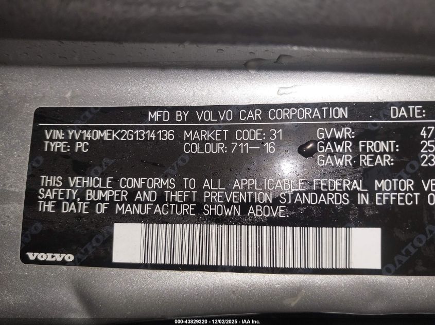 Колір СрібнийЦиліндри 4Привід Передній привідVIN YV140MEK2G1314136Стан Заводиться та їде (перевірено)Ушкодження Передня або задня AutoRIA