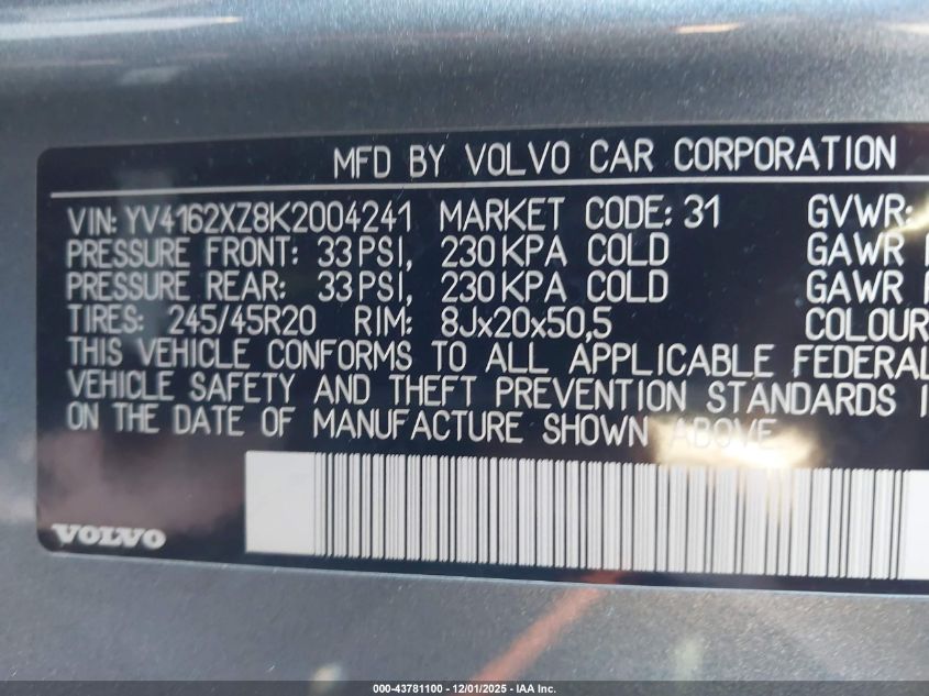 Колір СірийЦиліндри 4Привід Повний привідVIN YV4162XZ8K2004241Стан Заводиться та їде (перевірено)Ушкодження Передня або задня AutoRIA