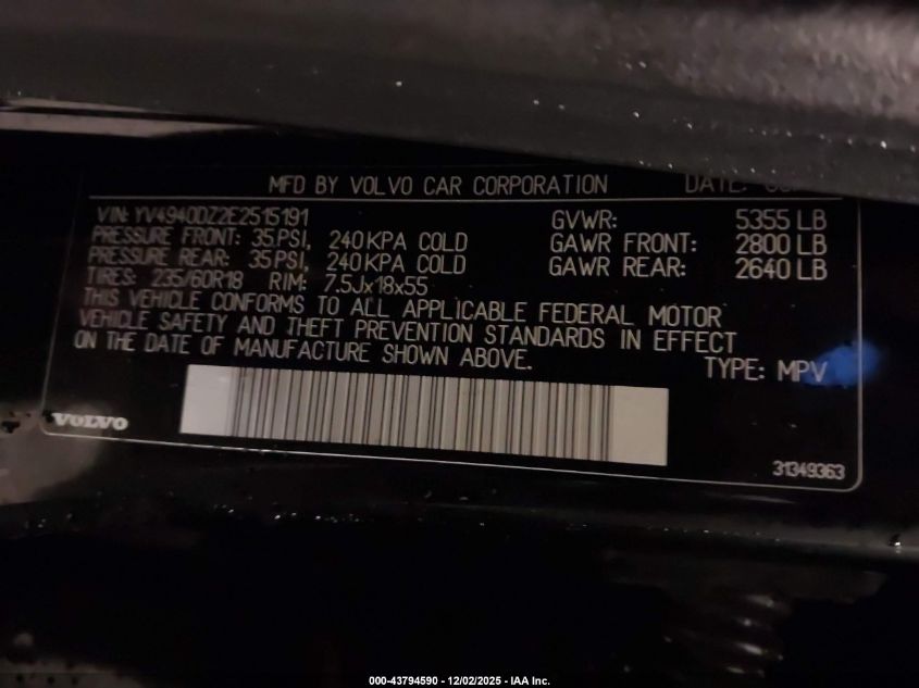 Колір ЧорнийЦиліндри 6Привід Повний привідVIN YV4940DZ2E2515191Стан Заводиться та їде (перевірено)Ушкодження Ліва сторона AutoRIA
