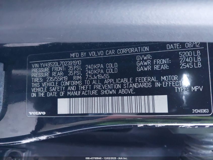 Колір ЧорнийЦиліндри 6Привід Передній привідVIN YV4952DL7D2391910Стан ЗаводитьсяУшкодження Передня або задня AutoRIA