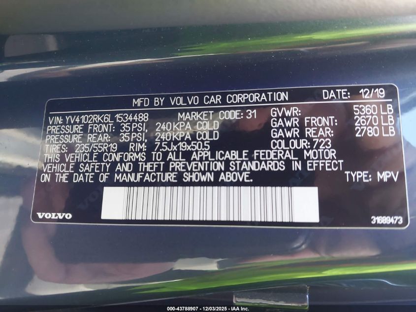 2020 VOLVO XC60 T5 INSCRIPTION