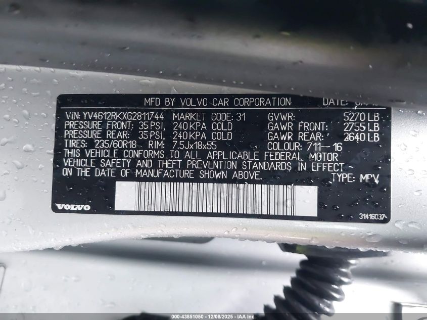 2016 VOLVO XC60 2016 року Бензин, 2.5, Повний привід, vin - YV4612RKXG2811744 з США