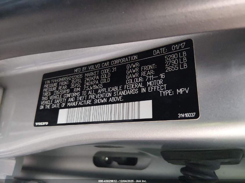 2017 VOLVO XC60 T6 R-DESIGN PLATINUM