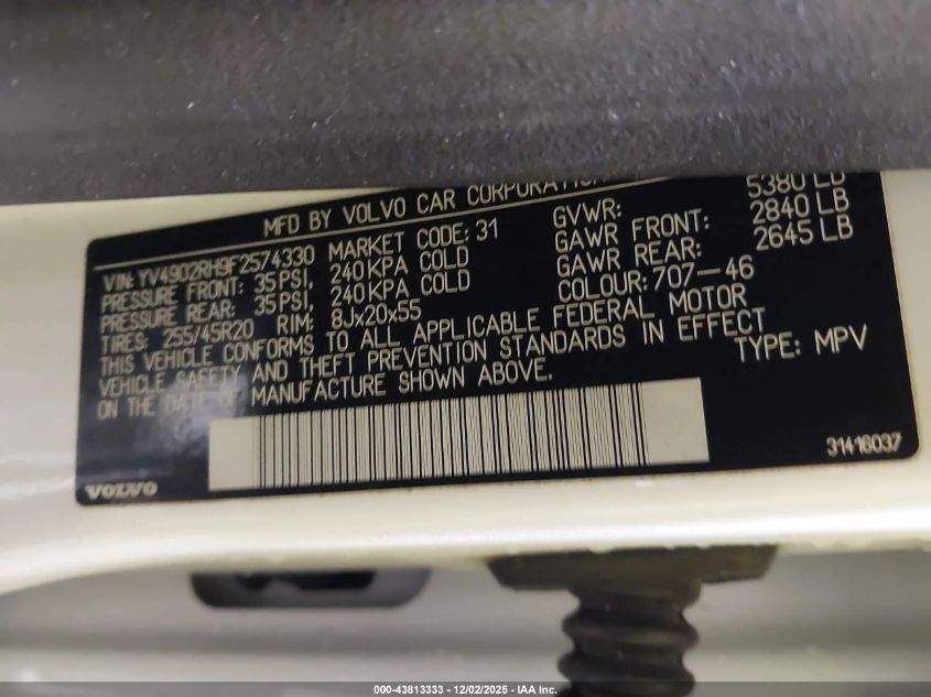 2015 VOLVO XC60 2015 року Бензин, 3.0, Повний привід, vin - YV4902RH9F2574330 з США