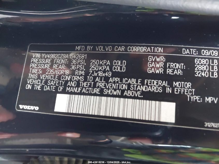 2010 VOLVO XC90 2010 року Бензин, 3.2, Повний привід, vin - YV4982CZ9A1542681 з США