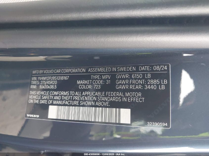 2025 VOLVO XC90 2025 року Бензин, 2.0, Повний привід, vin - YV4M12PJ9S1318167 з США