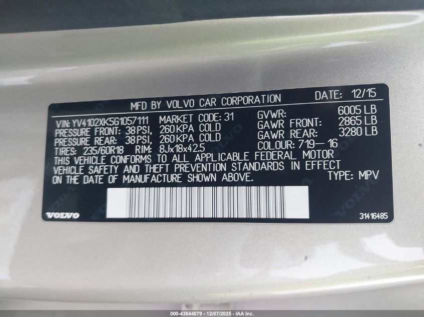 2016 VOLVO XC90 2016 року Бензин, 2.0, Повний привід, vin - YV4102XK5G1057111 з США